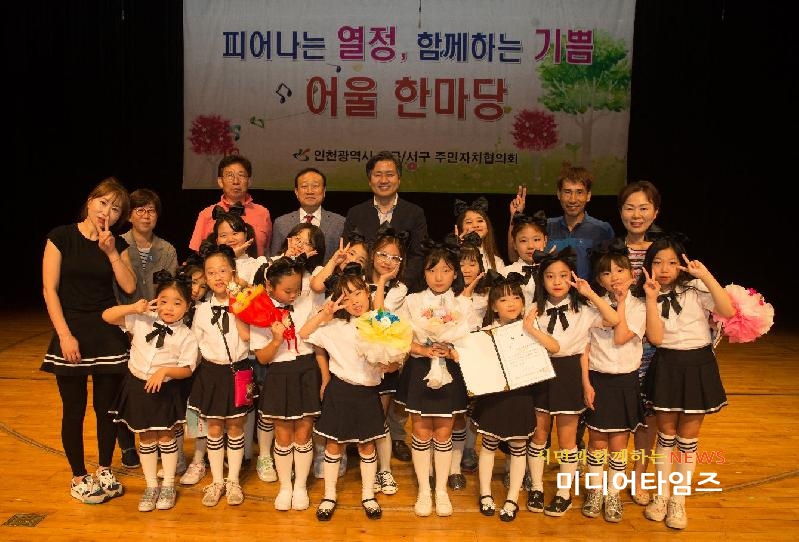 공연부문에서는 성인팀 못지않은 실력으로 발랄하고 깜찍한 무대를 선보인 검단2동 주민자치센터 방송 댄스 키즈반 ‘거미(검2) 트와이스팀’이 영예의 대상을 수상했다.