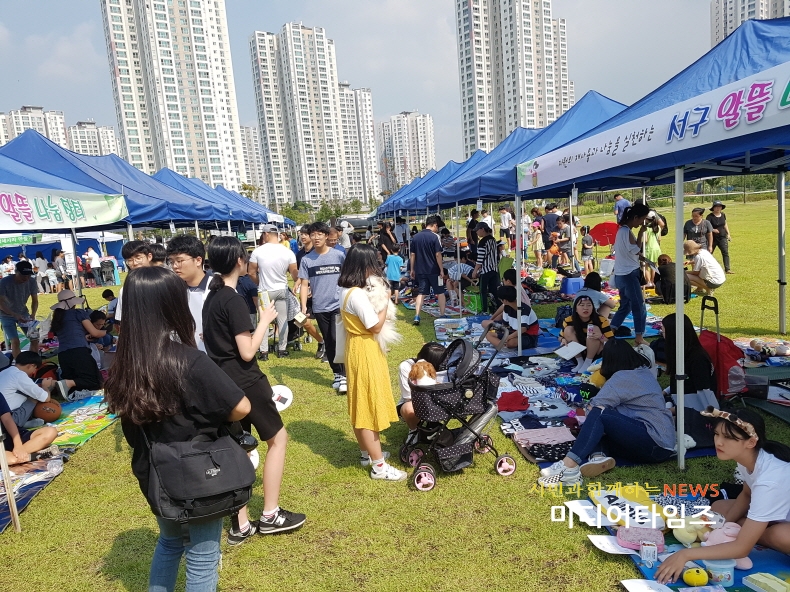 [미디어타임즈=홍기연 기자] 인천시 서구(구청장 강범석)가 지난 2일 청라호수공원 플라워뮤직아일랜드(야외음악당)에서 개최한 일뜰나눔장터가 큰 성황을 이뤘다.