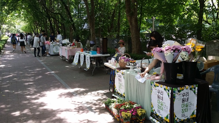 마실장터는 주민센터와 주민자치위원회, 지역 내 공방 작가들이 모여 우리동네 마실장터 운영위원회를 조직하고 4월부터 11월까지 매월 두 번째 토요일에 장터를 열어 공방 작가들과 주민들 모두에게 반응이 좋다.