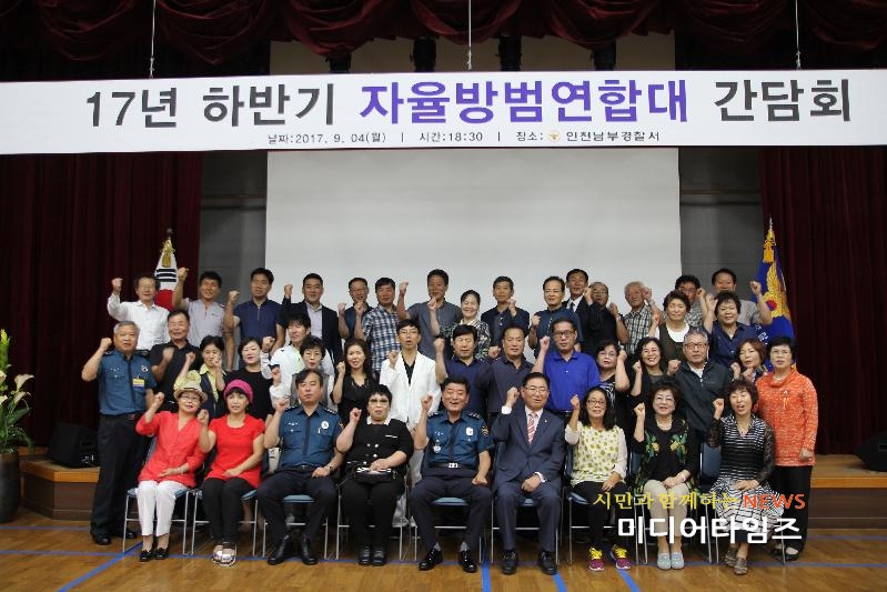 [미디어타임즈=문상수 기자] 인천남부경찰서는 지난 4일 경찰서 4층 강당에서 서장, 지구대장,파출소장 및 자율방범연합대 전금출 회장 등 약 40여명이 참석한 가운데 간담회를 개최했다.간담회에서는, 자율방범대 임원들에게 남부서의 중점 추진시책 및 활동을 알리고‘17년 하반기 체감치안도 향상’과‘민·경 공동체치안 활성화’방안에 대해 적극 토론하는 시간을 가졌다.이날 참석한 전금출 자율방범연합대 회장은 “오늘과 같은 자리를 통해 자율방범연합대가 활동하는데 있어 자부심을 느끼며, 앞으로 안전한 남구를 만들기 위해 최선을 다하겠다”는 말을 전했다.한편, 조종림 서장은 “항상 지역 치안유지를 위해 적극 나서는 자율방범연합대 회원들께 깊은 감사를 드리며, 공동체치안 활동은 경찰만의 힘으로는 한계가 있으니, 주민들이 안심하고 행복한 삶을 영위할 수 있는 남구를 만들기 위해 경찰과 지속적인 협력 치안 활동에 나서줄 것”을 당부했다.