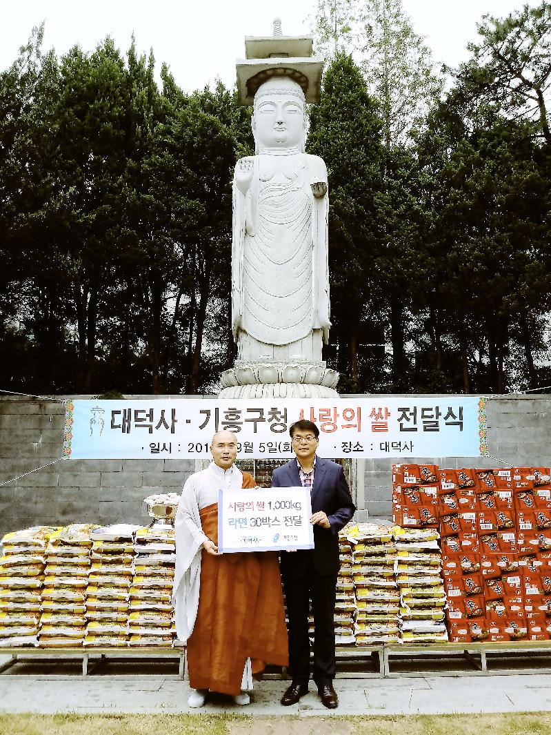 이번 기탁은 기흥구와 대덕사가 지난달 저소득층을 위한 ‘사랑의 쌀’ 후원 협약을 맺고 처음 이뤄진 것이다.