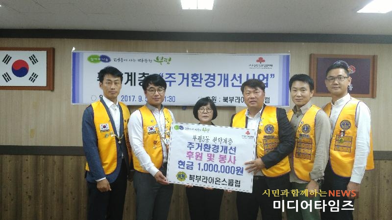 | 북부라이온스클럽 주거환경개선 후원금 전달 사진. <ⓒ미디어타임즈> |