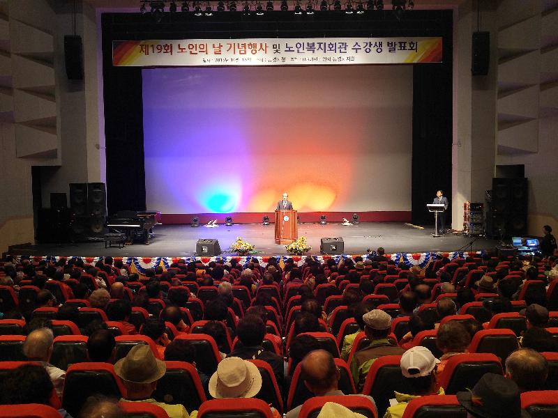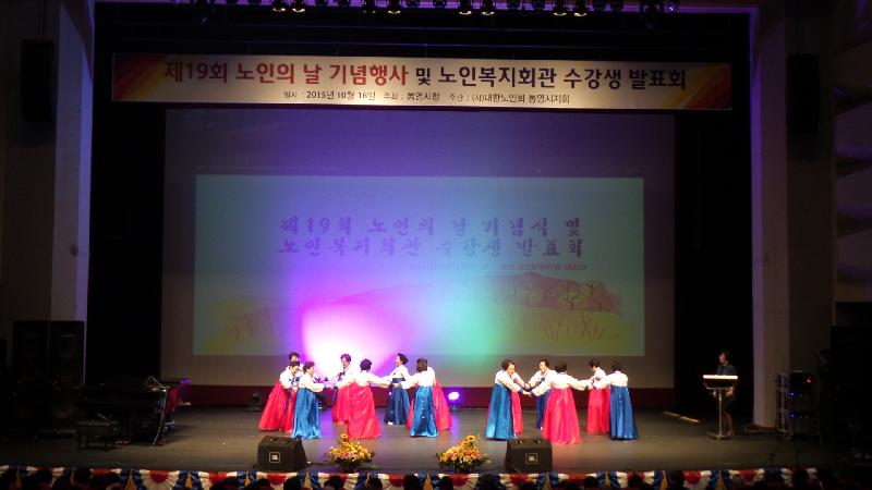 식전행사로 노인복지회관 수강생들이 그동안 갈고 닦은 사물놀이, 건강체조, 한국무용, 쇼샬댄스, 합창 등을 선보이며 많은 박수갈채를 받았으며 젊은이 못지않은 솜씨와 열정으로 참석자들에게 진한 감동과 웃음을 선사했다.
