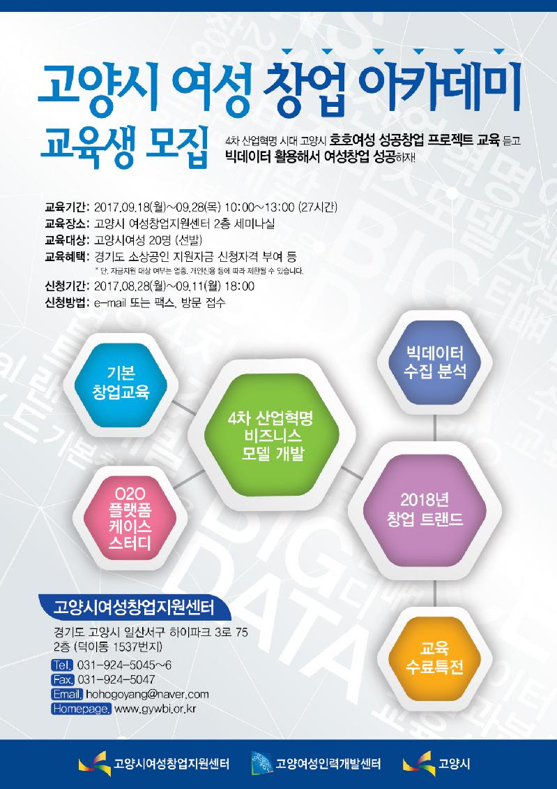 [미디어타임즈= 이옥수 기자] 고양시(시장 최성)와 고양시여성창업지원센터(센터장 유혜림)는 창업에 관심 있는 관내 거주 여성 예비창업자 20명을 대상으로 오는 18일부터 28일까지 무료 창업교육을 실시한다.
