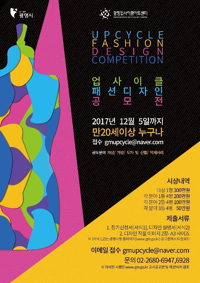 한편 공모전과 관련된 자세한 사항은 광명업사이클아트센터 홈페이지(gmupcycle.modoo.at)를 참고하거나 광명업사이클아트센터(02-2680-6928)에 문의하면 된다.