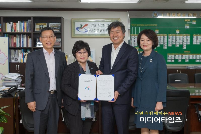 | 인천서구검단 어린이급식관리지원센터 재위탁 운영 협약 체결 모습.<ⓒ미디어타임즈> |