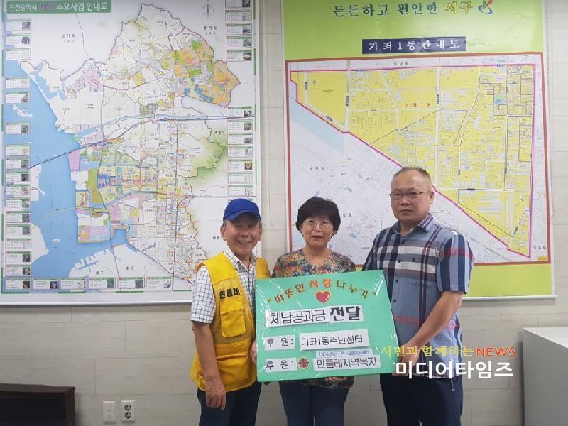 [미디어타임즈=홍기연 기자] 천주교 인천교구 민들레지역복지(대표 이효민 신부)는 지난 11일 가좌1동 주민센터를 방문해 생활이 어려운 저소득 독거노인가정에 도시가스요금 체납액 및 월세 미납금을 지원했다.
