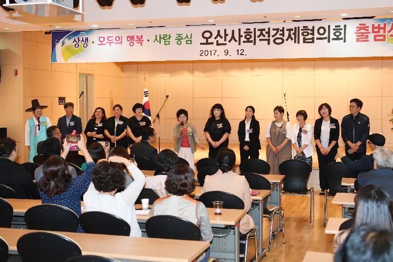 이날 출범식에는 오산시장 및 오산시의회 의장, 경기도 따복공동체 지원센터의 센터장 등 내빈과 사회적경제 기업 대표 등 70여명이 참석하여 사회적경제 협의회 출범을 축하했다.