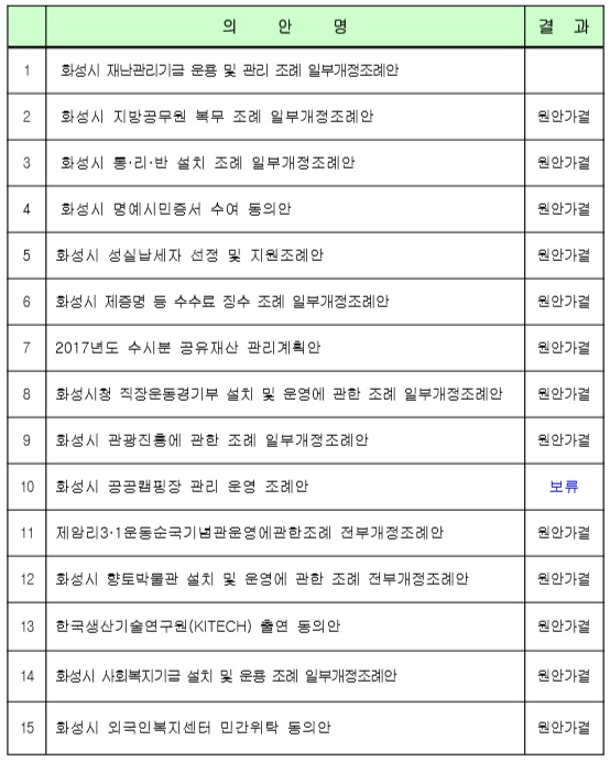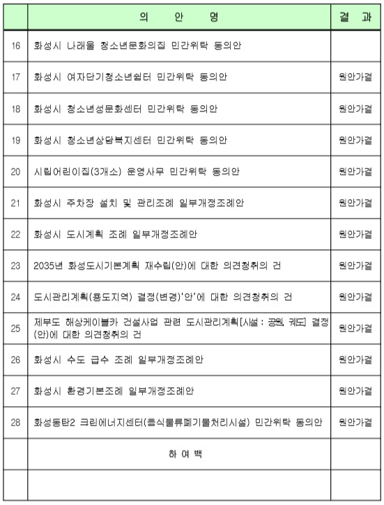 ■ 제165회 화성시의회 임시회 의결 결과