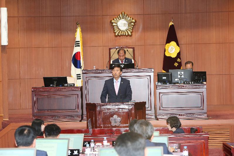 김정주 의장은 “임시회 기간 동안, 일반안건 처리를 위하여 노고를 아끼지 않으신 동료의원 여러분과, 공직자 여러분께 깊은 감사의 말씀을 드린다.”고 격려했다.