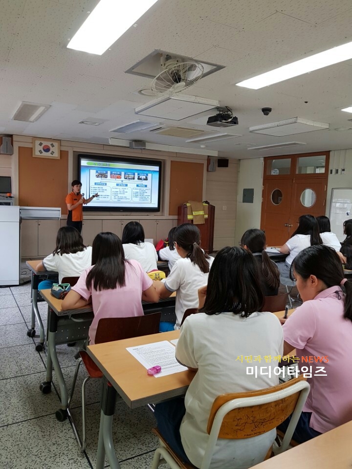 | 인천서부소방서, 가정여자중학교에 찾아가는 소방안전교육 모습.<ⓒ미디어타임즈> |