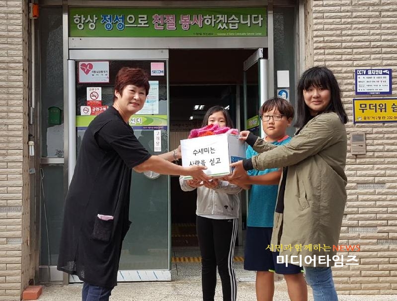 [미디어타임즈=홍기연 기자] 인천 서구 봉수초등학교 5학년 학생들이 지난 14일 가정2동 주민센터를 방문해 ‘저소득 이웃돕기를 위한 사랑의 바자회’에 사용해 달라며 3개월간 손수 뜬 수세미를 전달했다.