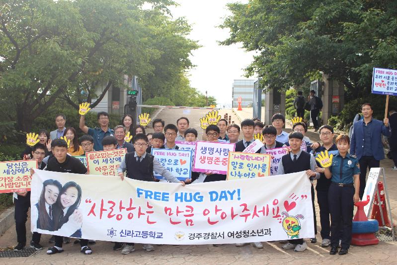 경주경찰서는 매년 신라고와 합동으로 허그-하이파이브 데이 행사를 실시해 왔으며 경찰-교사-학생 間 거리를 좁히고 학교폭력 예방 분위기 확산을 위해 지속적으로 행사를 이어갈 계획이다.