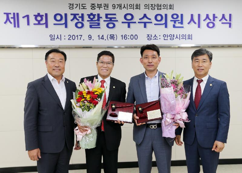 경기도 중부권 9개시의회 의장협의회가 주최하는 이번 시상식은 지방의회의원의 자질과 전문성을 제고해 지방자치 발전에 기여하고자 제정된 상으로, 주민참여소통, 지역현안해결, 지역경제활성화, 행정감사 등 총 9개 분야에 활동이 우수한 의원을 선정해 시상했다.
