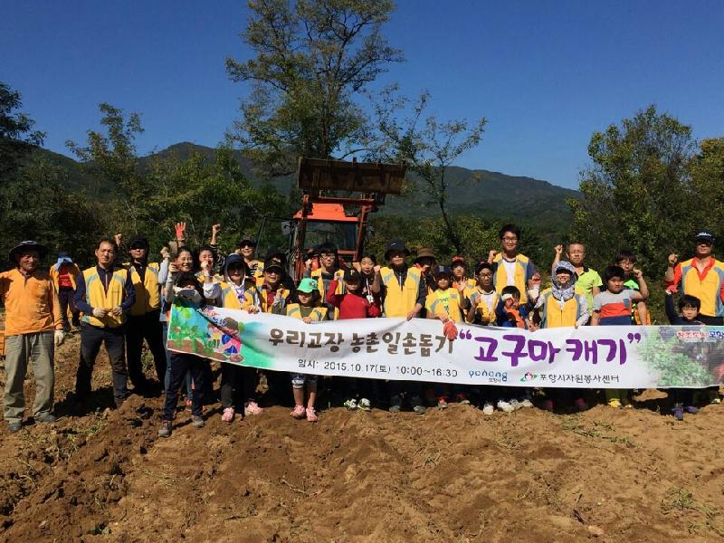포항시자원봉사센터(소장 권경옥)에서는10월17일(토) 포항시가족자원봉사단 및 청소년들과 함께 포항시 북구 신광면 죽성1리마을에 농촌일손돕기를 실시하였다.