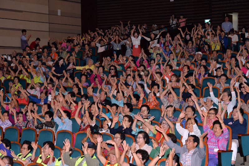 | 지난해 성남시청서 열린 어르신을 위한 어린이 예술제 때 환호하는 어르신들. |