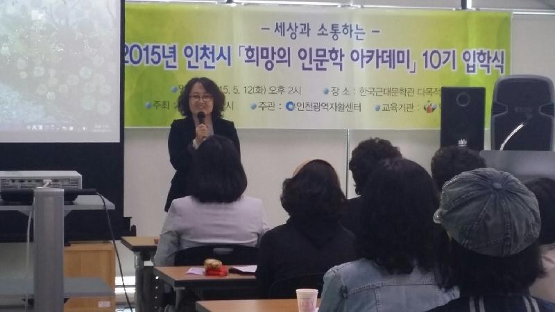 인천광역시(시장 유정복)는 5월 12일 한국근대문학관에서 2015년도 자활사업 참여자 30여명을 대상으로 ‘제10기 희망의 인문학 아카데미’ 입학식을 개최했다.