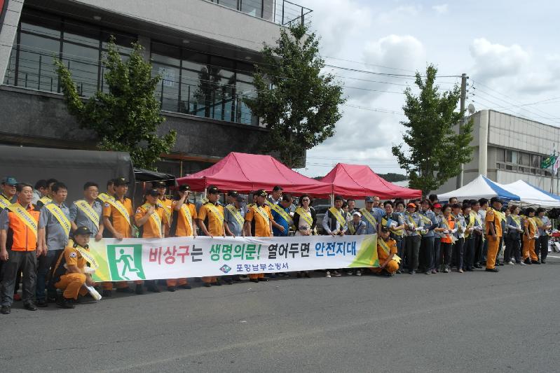 [미디어 타임즈 = 배수남 기자] 포항남부소방서(서장 은대기)는 지난 9월 15일 오천시장 일원에서 소방서․의용소방대 및 유관기관 등 70여명이 참석한 가운데 비상구 등 안전관리 캠페인 및 추석연휴 장보기 행사를 실시했다고 밝혔다. 이번 행사는 추석 연휴 대비 불특정 다수인이 운집하는 다중이용시설 등에 대한 사전예방활동을 통해 화재로부터 시민의 소중한 생명과 재산을 보호하고자 추진되었으며, ▷비상구 안전관리 캠페인 및 장애물 방치, 비상구 폐쇄 등 행위에 대한 계도 ▷비상구 확인 홍보전단지 및 홍보물품 배부 ▷범시민대상 주택용 소방시설 의무 설치 홍보 ▷추석연휴 장보기 행사 등을 병행 실시했다. 은대기 포항남부소방서장은 “추석연휴 기간 동안 다중이용시설 관계자는 비상구 적치물 등 화재위험요소를 사전에 제거해 시민들이 안전한 추석을 보낼 수 있도록 최선을 다해 줄 것”을 당부했다.