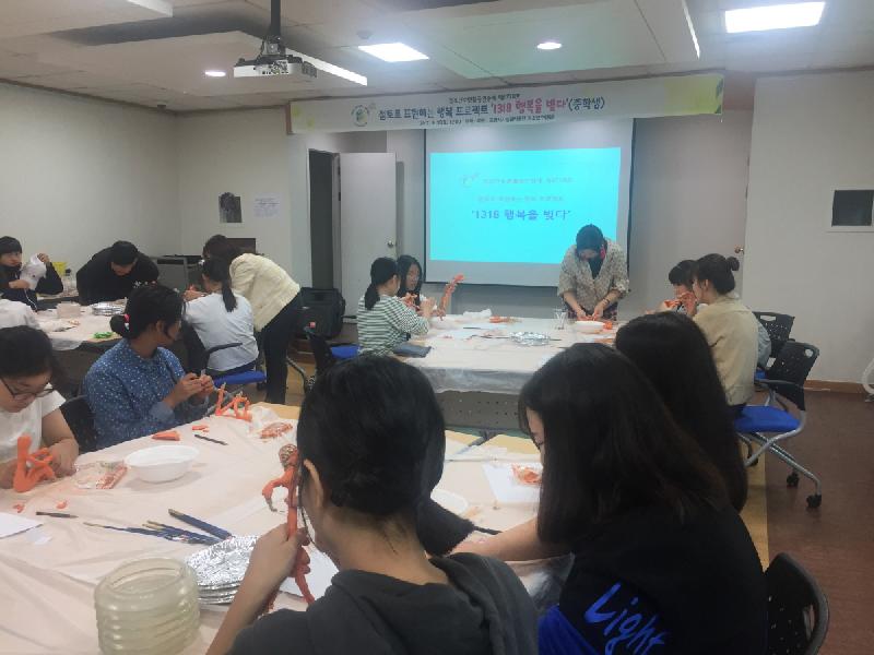 [미디어 타임즈 = 배수남 기자] 포항시시설관리공단(이사장 김흥식) 청소년수련관은 지난 16일 청소년수련관 다목적홀에서 중학생 20명을 대상으로 청소년수련활동인증 제6778호 점토로 표현하는 행복 프로젝트 ‘1318 행복을 빚다’를 실시했다. 이번 청소년수련관에서 실시한 점토로 표현하는 행복 프로젝트 ‘1318 행복을 빚다’는 청소년 문화예술활동으로 청소년 정서에 순기능을 미쳐 청소년들의 문화감수성 증진 및 자아정체성 확립에 기여하고, 문화예술활동을 통한 성취감과 만족감으로 타인에 대한 소통과 수용 능력을 배양하여 청소년의 행복지수를 높이는 청소년수련활동 프로그램이다. 이날 스케치로 마주한 나로 행복 찾기, 점토로 내가 가장 행복한 순간의 행복 빚기, 작품 감상으로 행복 공감 스토리 행복 담기의 다양한 체험 활동을 청소년들에게 제공했다.