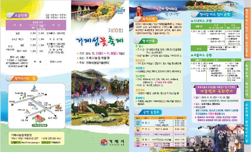 가을꽃을 직접 길러 키워 전시하는 국내 최고의 수제(手製,손으로 만드는) 축제인 제10회 거제섬꽃축제가 오는 10월 31일부터 11월 8일까지 9일간 거제면 소재 농업개발원에서 열린다.