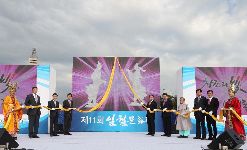 포항 일월정신을 빛, 불, 철로 승화한 정신문화 전승의 대표축제인 제 11회 일월문화제가 10월 16일 해도공원에서 개막하여 다채로운 내용으로 포항 전역을 문화예술로 물들인 후 18일 대단원의 막을 내렸다. 이번 문화제는 “해와 달, 창조의 원류”를 주제로 창조도시 포항에 걸 맞는 전통과 현대가 어우러지는 융·복합 참여프로그램으로 구성되었다. 16일 해도공원에서 펼쳐진 개막식에 앞서 식전행사로 제1회 포항민속경연대회가 열렸으며 이는 각 읍면동에서 명맥을 유지하며 특색 있게 전승되어 온 포항의 정신 및 민속놀이로 “함께해요 일월문화제! 도약해요 포항문화”라는 슬로건으로 포항문화원 주관으로 펼쳐졌다. 경연대회는 청하 “후릿그물 고기잡이”, 오천 “포은 정몽주”, 장량동 “떡고개”, 연일 “부조장터”, 호미곶 “해녀들의 물질”, 구룡포 “과메기 덕장놀이”, 기계 “새마을운동”, 효곡동 “아리랑 배띄워라”, 동해 “연오랑세오녀”, 죽장 “지게상여놀이”까지 10개 읍면동에서 참가하였다. 이날 장원의 영예는 동해면 문화체육회의 “연오랑세오녀”에게 돌아갔으며 연오랑의 상징인 철 대장장이를 재현하고 일월신제 헌관 및 집사를 포함한 동해면민 180여명이 참여해서 동해면의 자부심과 일월의 정신을 가장 잘 표현하여 상장과 상금 150만원이 전달되었다. 차상은 포항의 가장 북단 오지마을에서 어려웠던 시절 지게에 널을 싣고 장례를 지내는 죽장면 고유의 장례문화를 재현한 “죽장지게상여”가 차지했으며 상장과 상금 100만원이 전달되었다. 이외에도 차하 3개팀은 실질적인 배를 등장시켜 전통적 월포 앞바다의고기잡이 모습을 재현한 청하 월포해수욕장 번영회의 “후릿그물 고기잡이” 와 새벽종이 울리는 1970년대를 재현한 기계 “새마을 운동”, 어려운시절 장량동 고개를 넘어 죽도시장에 떡을 팔면서 생계를 유지하고 배불렸던 모습을 보여주어 관객들로부터 심금을 울리게 한 장량동 문화가족회의 “떡고개”에게 돌아갔으며 각각 상장과 상금 50만원씩 전달되었다. 이날 제1회 포항민속경연대회는 포항지역에서 옛날부터 전해 내려오는 시민들의 삶의 모습과 애환을 담아 일월문화제를 더욱 더 풍성하게 만들었다. 취타대의 장엄한 울림과 내빈입장으로 시작된 개막식에서는 민속놀이 재현행사의 우수팀에 대한 시상과 53만 시민의 염원을 담은 “창조의 빛 오름” 개막 퍼포먼스로 창조도시 포항의 빛으로 다시 일어서는 대한민국을 선포했다. 이어서, 다이나믹한 창작 타악과 무용, 비보이 등의 아리랑파티와 인기가수 배일호의 축하공연, 시민모두가 한데 어울리고 소통하는 “다같이 월월이청청”을 마지막으로 화려하고 힘찬 개막식의 막을 내렸다. 이날 체험행사로는 “아로마 비누만들기”, “연오야~ 세오야~ 열쇠를 부탁해!”, “천연염색“ ”옛 여인들의 머리모양으로 풀어보는 역사이야기” 등 다양한 체험과 전시로 방문객들의 눈길을 끌었으며 검은돌장어와 물회 등 특산물 판매 전시로 풍성한 먹거리도 함께했다. 10월 17일 토요일에는 포항문화원에서 제37회 전국한시백일장이 전국에서 100여명의 한시인들이 모인가운데 “축 일월문화제” 시제로 펼쳐졌으며 대구 이창오씨의 작품(웅도의 발전이 영원무궁하기를~)이 장원을 차지했다. 일월문화제 특별행사로 지난 12일 “연오세오 길을 찾아” 학술세미나와, 제18대 연오랑세오녀 부부선발대회에서는 앞으로 2년간 포항시 홍보대사로 활동할 새로운 연오랑세오녀 부부(김병우·최영미)가 탄생하였다. 또한 주제 공연과 전시인 오페라뮤지컬 “겸재정선과 내연산”, 단막창극 “불의 여인 세오녀”, 미디어아트 형식 전시인 “영일만 고지도전”이 포항문화예술회관에서 3일간 이어졌으며 특히 일월문화 소재의 기획프로그램이라 시사하는 바가 더욱 컸다. 이외에도 “마카다연극축전”, 천연염색 및 규방공예 작품전, 제32회 수석전시회, 제23회 포항서예대전, 제27회 포항 전국사진공모전, 제20회 포항시민가요제, 문화예술동아리페스티벌 등 포항전역이 문화예술의 장으로 물들었다. 이강덕 포항시장은 “연오랑세오녀 일월정신은 포항시민 저력의 DNA로써 빛과 개척의 창조적 정체성과 잠재력을 발판으로 첨단산업중심의 창조도시로 새롭게 변신해서 환동해 중심도시로 도약하자“로 말했다. 특히 이번 제11회 일월문화제는 제4회 스틸아트페스티벌과 함께 개막하여 철과 예술이 어우러진 수준높은 스틸작품들이 함께 전시되어 일월문화제를 더욱더 풍성하고 품격 있게 했다.// 심후보 기자
