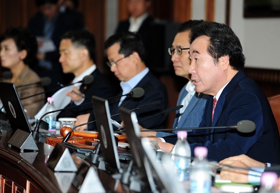 | 이낙연 총리가 19일 정부서울청사에서 열린 국무회의를 주재하고 있다. |