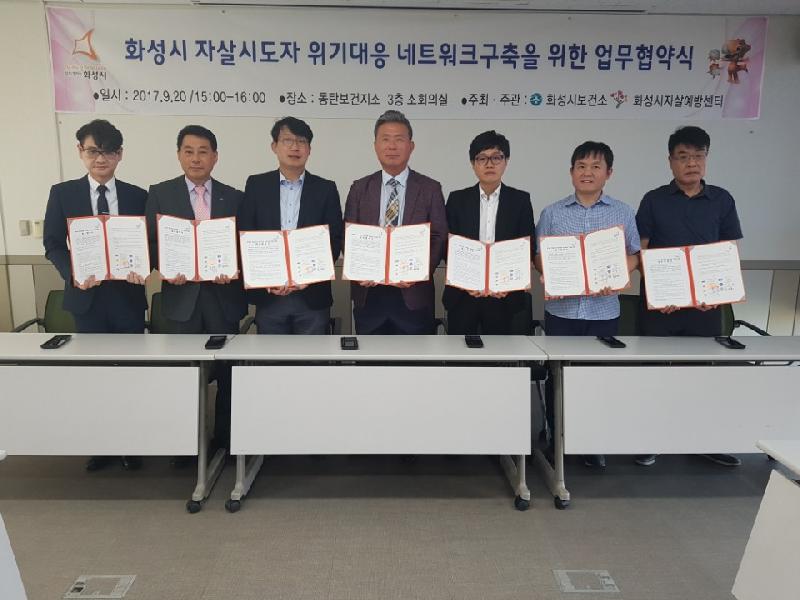 화성시자살예방센터는 20일 동탄보건지소에서 메타메디병원, 새샘병원, 승민의료재단 화성초록병원, 한림대동탄성심병원(응급의료센터), 화성중앙병원(응급실), 수원중앙병원 등 총 6개 의료기관과 ‘자살 위기자 위기대응체계 마련을 위한 업무협약’을 체결했다.