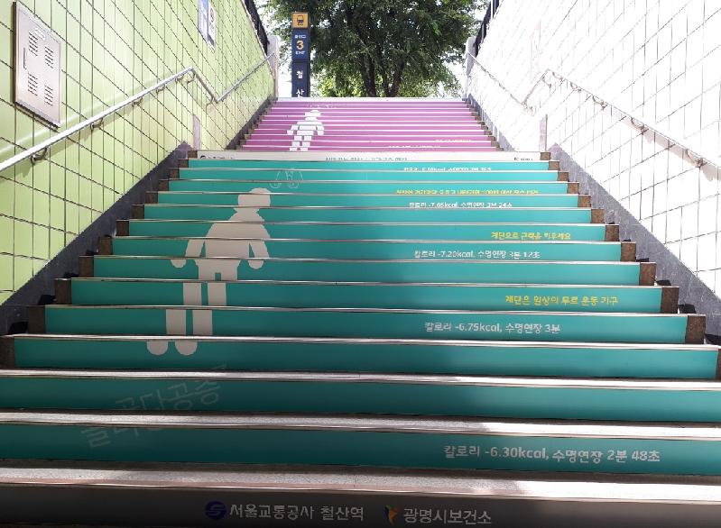 | 지하철 7호선 철산역 3번출구에 설치된 건강계단 모습. |