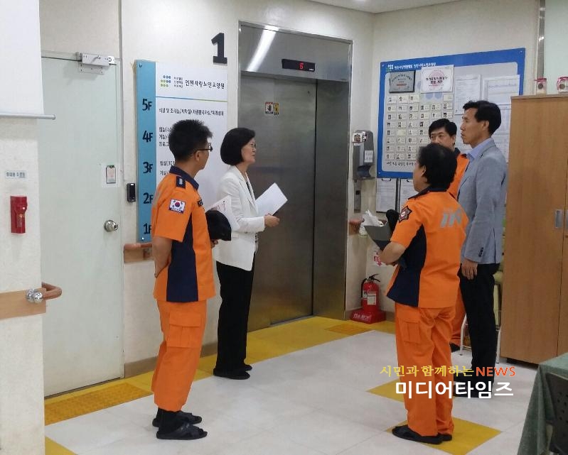 [미디어타임즈=문상수 기자] 인천남부소방서(서장 김성기)는 20일 다가오는 추석절을 대비, 신속한 현장대응체계를 확립하여 대형화재를 미연에 방지하고자 관내 화재취약대상인 인천사랑노인요양원(남구 용현동 소재)과 주안해피타운(남구 주안동 소재)을 대상으로 관서장 현장예찰을 실시했다.이번 예찰의 주요내용으로는 ▲적정 소방시설 등의 설치 또는 유지ㆍ관리에 관한 사항 ▲관계인의 피난시설 및 방화시설의 유지ㆍ관리에 관한 사항 확인 ▲자체 소방시설 작동방법 및 소화기 등 기초소화시설 사용법 ▲화재 등 재난 발생 시 초기대응 및 노인 피난 대책 등을 확인하고 점검했다.김성기 인천남부소방서장은 “요양원의 경우 화재발생 시 노인들을 안전한 곳으로 대피시키는 것이 가장 중요하므로 적정 장소에 대피공간을 확보할 수 있도록 조치하고, 노인들이 안전하게 추석절을 보낼 수 있도록 관계자는 소방시설 사용법을 확실히 숙지하여 신속히 대응해 줄 것”을 당부했다.
