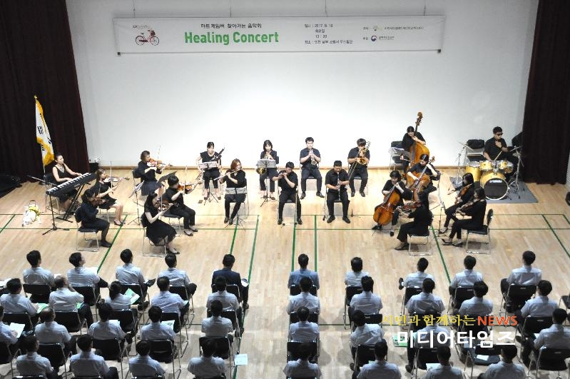 [미디어타임즈=문상수 기자] 인천남부소방서(서장 김성기)는 지난 19일 본서 2층 두드림관에서 소방공무원 및 의용소방대원 등 100여명이 참석한 가운데, 하트체임버오케스트라 음악회를 개최했다.직장교육훈련과 병행하여 실시한 이번 음악회는 각종 재난현장에서 정신적, 육체적 피로가 쌓인 소방공무원들에게 따뜻한 위안과 감동을 전하기 위해 마련되었다. 시각 장애인 전문 음악인으로 구성된 ‘하트체임버오케스트라’는 전국의 안전직업공무원(경찰관, 소방관, 해양경찰 등)을 방문하여 위로와 치유를 통해 내일을 향한 희망을 주고자 힐링콘서트 형식으로 찾아가는 음악회를 진행하고 있다.소방서 관계자는 “계속되는 교대근무로 문화 접근성에 한계가 있는 소방공무원들에게 그동안 쌓여있던 피로를 해소하게 하는 한편, 오케스트라 단원들과 함께 소통하며 서로에게 감동과 마음을 전하는 계기가 되었다.”고 전했다.