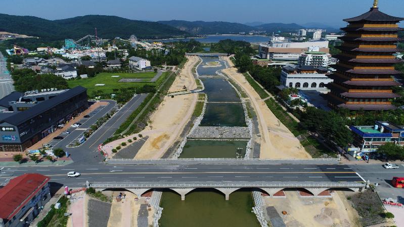 [미디어 타임즈 = 배수남 기자] 경주시에서는 21일 대한민국 국제물주간 행사와 연계해 보문 HICO 야외전시장에서 ‘신평천 생태하천’ 준공식을 가졌다. 이날 준공식에서는 최양식 경주시장과 김석기 국회의원, 박승직 경주시의장을 비롯한 도의원 및 시의원, 각 기관단체장과 자생단체장 및 주민 등 500여명이 참석한 가운데, 경주챔버오케스트라의 식전공연으로 축하의 포문을 열었다. 공식행사는 최홍락 경주시청 건설과장의 생태하천 복원 경과보고에 이어 공로패 전달, 최양식 경주시장의 기념사, 준공식 퍼포먼스, 폐회 순으로 진행됐다. 이외에도 풍물패 길놀이와 생태관련 자연치유사 해설, 붕어 등 토종물고기 방류행사가 진행되는 신평천 현장투어 등 다채로운 행사를 통해 새로운 생태하천의 조성을 축하하는 자리를 가졌다. ‘신평천 생태하천복원사업’은 훼손된 하천의 생태복원을 목적으로 2014년부터 2017년까지 4년간 총사업비 120억원을 투입하여 하천변을 따라 인공적으로 설치된 콘크리트 호안 및 횡단구조물을 전부 철거하고 자연석 및 식생매트리스 등 자연환경과 어울리고 식물이 자생할 수 있는 친환경 공법으로 호안을 정비했다. 또한 하천변 식생군락과 수변생태체험원, 생태탐방로, 하중도, 자연형여울 등 친수공간을 조성했고, 탐방로 주변에 교목, 관목 및 초화류 등을 식재하여 하천 생태복원에 힘썼다. 경주시장은 기념사에서 “생태하천으로 새롭게 태어난 신평천이 시민들에게는 새로운 휴식의 장으로, 보문단지를 찾는 관광객에게는 또 하나의 새로운 관광명소가 될 것으로 기대된다.”라며, “현재 보문단지가 제2의 중흥기를 맞고 있는 가운데, 새롭게 태어난 신평천 생태하천과 함께 관광도시 경주의 위상을 높이고 물산업 선진도시로 도약하는데 큰 도움이 되기를 기대한다.”라고 말했다. 한편 경주시는 신평천 생태하천복원사업 뿐만 아니라 북천 고향의 강 정비사업과 충효천 생태하천복원사업도 성공적으로 추진한바 있으며, 올해 국토부 하천공모사업에 선정된 신당천 생태하천 조성까지 앞두고 있어 지속적인 사업추진을 통해 아름답고 친환경적인 생태도시 경주로 거듭나기 위해 끊임없이 노력하고 있다. 또한 23일까지 화백컨벤션센터에서 열리고 있는 대한민국 국제물주간 2017과 제1차 아시아 국제물주간 행사에서 미래 친수도시 조성의 방향을 제시하고 지하저류시설 설치 제안 등 물 문제 극복을 위한 적극적인 해법제시를 통해, 물산업 선도도시로서의 위상을 높이고 아름다운 물의 도시 경주를 세계에 널리 알리고 있다.