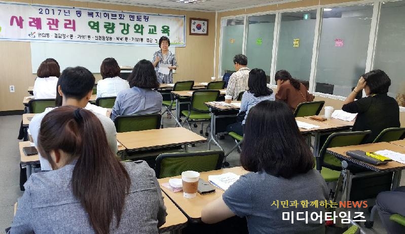 | 복지허브화 정착을 위한 멘토링 사례관리 역량강화교육 모습.<ⓒ미디어타임즈> |