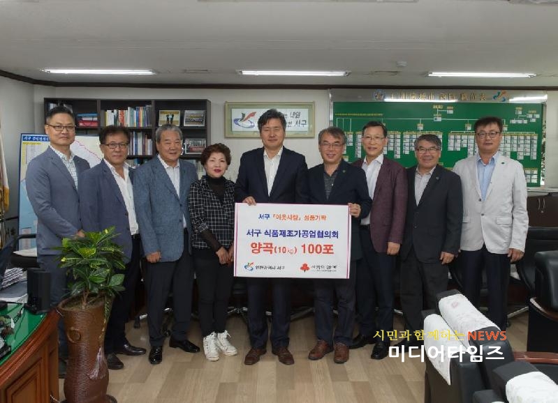 [미디어타임즈=홍기연 기자] 우리민족 고유의 명절인 추석을 맞이하여 (사)인천서구식품제조가공업협의회(회장 김종호)는 지난 22일 서구청에서 관내 사회복지 시설 및 불우이웃 등을 위해 양곡 10kg 100포를 서구청에 전달했다.