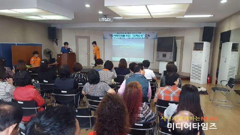 [미디어타임즈=문상수 기자] 인천 동구 송현1․2동(동장 김진기)는 25일 관내 주민자치위원, 통장, 각 자생단체, 일반주민 등 40여명을 대상으로 심폐소생술 교육을 실시했다. 이번 교육은 심장마비를 목격한 사람이 즉시 심폐소생술을 시행하면 그렇지 않은 경우에 비해 환자의 생존율이 3배 이상 높아짐에 따라, 우리 주변에서 응급상황이 발생 시 소중한 이웃의 생명을 살릴 수 있는 방법을 주민들에게 알리기 위해 마련됐다.이번 심폐소생교육은 인천 중부소방서와 인천 동구 송현1·2동 주민센터의 협력으로 이루어 졌으며, 응급상황 시 심폐소송을 실시하는 방법과 AED(심장세동기)사용방법에 대하여 심도 있는 교육을 실시했다. 행사를 주관한 김진기 송현1·2동장은 “1대1실습을 통한 심폐소생술 교육으로 눈으로만 보던 교육을 벗어나 본인이 직접 심폐소생을 실시함으로써 실생활에서 활용이 가능할 것”이라며 “앞으로도 주민들을 대상으로 심폐소생교육을 지속적으로 실시할 것”이라고 밝혔다.
