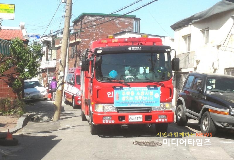 | 숭의동 고지대 소방차 출동로 확보훈련 모습. <ⓒ미디어타임즈> |