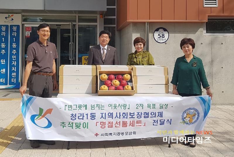 [미디어타임즈=홍기연 기자] 인천 서구 청라1동 지역사회보장협의체는 지난 27일 ‘빈그릇에 넘치는 이웃사랑’ 캠페인 2차 목표(빈그릇 인증샷 누적 2,000건) 달성을 기념해 관내 저소득 가구(10세대)에 명절선물세트(과일세트 50만원 상당)를 전달했다.
