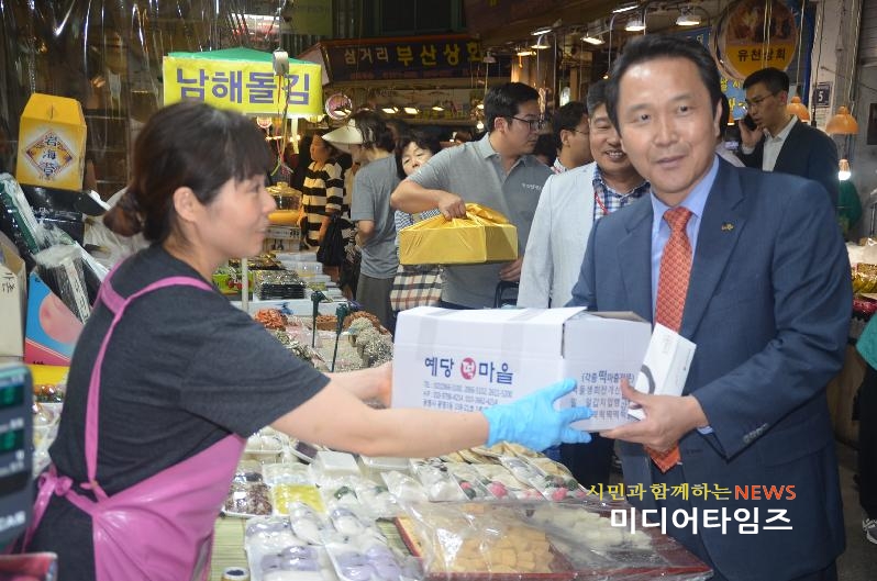 이양호 회장은 이날 김갑렬 광명문화공감센터장, 철산 3동 주민 등과 함께 광명 전통시장과 광명시노인종합복지관을 찿아 1인당 10만원씩 총2000만원 상당의 온누리 상품권을 지급해 전통시장 활성화와 독거노인 및 취약계층 지원사업을 펼쳤다.