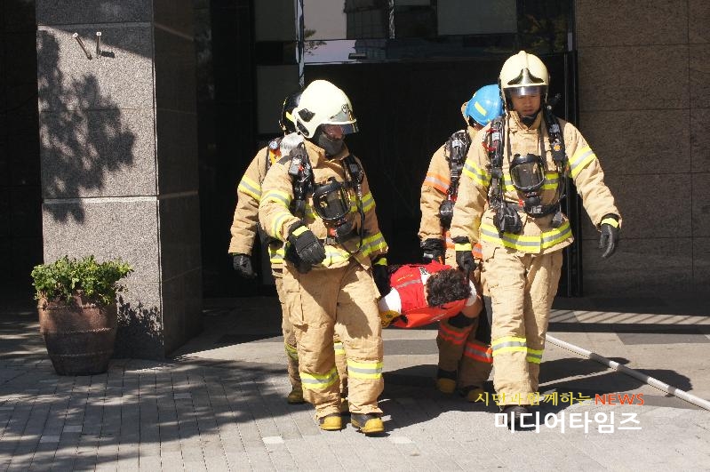 | 준고층건축물 합동소방훈련 모습. <ⓒ미디어타임즈> |