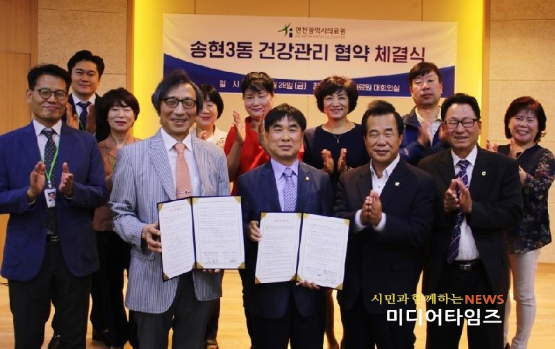 [미디어타임즈=문상수 기자] 인천시 동구 송현3동과인천의료원이 지역 주민들의 건강 증진과 지역보건의료 반전에 협력을 강화한다. 이를 위해 양 기관은 지난29일 인천의료원 대회의실에서 업무협약(MOU)을 체결했다.이날 협약의 주요 내용을 살펴보면, 송현3동 주민이 인천의료원 장례식장을 이용하면, 시설이용료의 20%를 할인하고, 종합검진을 비롯한 진료시설 등을 이용할 때도 비용 감면 혜택 서비스를 제공한다.아울러, 협약기간 동안 송현3동 주민들은 독감예방접종을 2만원에 접종할수 있다.이번 협약체결과 관련해 송현3동의 한 관계자는 “이번 협약으로 관내 주민이 더욱어 편리하게 의료서비스를 이용하고 지속적인 관심과 협조로 상호 협력을 강화할 수 있도록 노력할 것”이라고 말했다. 한편, 이날 협약식에는 김철수 인천의료원장을 비롯한 인천의료원 임직원과 박영우 인천시 동구의회 부의장, 송현3동 주민자치위원장 등이 참석했다.