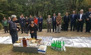 [미디어타임즈=문상수 기자] 황금연휴 인 추석 다음날인 10월 5일 오전11시 서울특별시 강북구 수유리 애국선열묘소에서 대한민국순국선열 숭모회가 주관하고, 글로벌에코넷 (김선홍 상임회장) ,한국정치평론가협회 (전대열 회장), 독도칙령기념사업국민운동연합 (조대용 회장), 천지인 산악회 (신은선 회장) 가 주최하는 무후선열 광복군 17위 추도식 및 추석 합동차례가 엄숙하게 진행됐다.광복군 합동묘소는 1943년 ~ 1945년 중국각지에서 일본군과 싸우시다 전사하였지만, 국립묘지에 안장되지 못한 광복군 선열중 신원과 생사가 확인된 17위 합동묘소로 1967년 한국광복군 동지회가 조성하였고, 1985년 국가보훈처에서 단장하여 현재에 이르고 있다.수유리 합동묘소에 묻힌 17위는 그나마 동료들이 유골을 수습하고 있다가 광복 후 귀국하면서 봉안하여 왔다.유가족이 있는 분들은 대부분 동작동 국립묘지에 안장되었으나 후손이 나타나지 않는 17위는 광복 22년이 흘러간 후에야 합동묘소로 마련되었다.광복군동지회, 강북구청, 8.15 행사일에는 보훈처에서 나와 공식적으로 행사를 지내지만 우리 민족 고유명절 설날, 추석에는 후손이 없기에 송편, 떡국도 못드시고 술한잔 못올리기에 시민사회단체, 강북구 주민들로 구성된 대한민국 순국선열숭모회에서 2007년부터 추도식을 시작으로 2011년 부터 합동차례를 봉행하고 있다.국가보훈처장 명의의 묘역정리 사업의 연혁비문에는 “일제의 국권침탈을 반대하여 가정을 돌보지 않고 고귀한 생명마저도 나라와 겨레를 위해 기꺼이 바친다는 것은 민족정기의 발로다. 이역만리 중국 땅에서 조국의 독립을 쟁취하기 위하여 일본과 싸우다 순국하신 대한민국 임시정부 정규군인 광복군 17위의 충혼이 서려 있는 곳. 그리고 우리들의 자손들에게 님들의 숭고한 애국정신을 귀감으로 전하고자 1985년 광복 40년을 기하여 이곳을 단장하게 되었다” 고 적었지만 ‘후손 없는 독립군’에 대한 정확한 언급이 빠진 점이 못내 아쉽다.추도식과 추석 합동차례를 마치고,김선홍 대한민국 순국선열숭모회 상임공동대표는“광복군은 대한민국 임시정부의 정규군이고” 헌법 전문에 대한민국은 임시정부의 법통을 잇기에 광복군은 마땅히 우리나라 최초의 국군이다. 당연히 국군의날은 10월1일이 아닌 1940년9월17일 한국광복군 창군일 로 변경 제정되어야 하고 광복군 합동묘소를 국립 묘역화하여 대한민국 정부 차원에서 정당한 예우해야 한다”고 촉구 했다.특히 2017년 황금연휴 추석다음날 인데도 불구하고 합동차례 행사에는 대한민국 순국선열숭모회 전대열 상임대표, 조대용 상임공동대표, 김선홍 상임공동대표, 천지인 산악회 신은선 회장이 정성껏 제물과 제주를 마련하였고 많은 시민사회단체대표들이 참석하였다.김선동 국회의원, 유인학 4.19혁명공로자회장 및 임원진, 반재철 전 흥사단 이사장,송운학 국민주권개헌행동 책임대표, 친환경건설추진국민운동본부 이보영 상임대표, 오의교 3.1정신선양회회장, 나누고 베풀고 봉사하는 그룹 한옥순 회장, 기업윤리경영을 위한 시민사회단체협의회 등 와 강북구 주민등 50여명 참석했다.