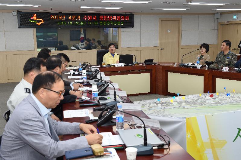 수원시통합방위협의회는 지난 19일 수원시청 통합방위상황실에서 2015년도 제4분기 정기회의를 개최했다.