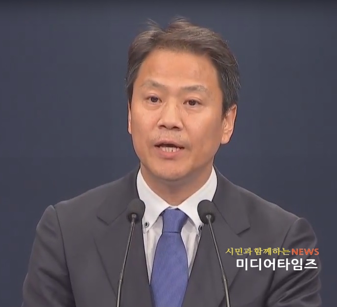 | 12일, 임종석 대통령비서실장이 청와대 춘추관에서 세월호 사고 당시, 상황보고 일지를 사후에 조작한 정황이 담긴 파일 발견 관련해 브리핑하고 있다. <사진=청와대 뉴스룸 캡쳐> |