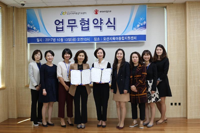 [미디어타임즈= 신훈종 기자] 오산시육아종합지원센터(센터장 문미진)는 13일 국제 구호개발NGO인 세이브더칠드런 중부지부(지부장 김미숙)와 아동권리증진을 위한 업무협약(MOU)을 체결했다.