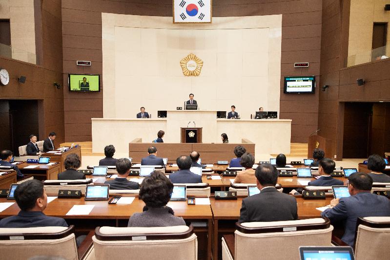 김중식 의장은 개회사에서 “우리가 추진하는 정책과 사업들은 정당성을 확보해 가는 과정 속에서 풀어가야 한다”라며 실질적 정당성을 추구하는 의정활동의 중요성에 대해 말했다. 또한 “공공의 선(善)보다 특정인과 소수의 이익을 우선할 때 절차는 무시되고, 다른 의견은 묵살 되는 것을 우리는 익히 보아왔다”며 “사업의 필요성과 성과를 면밀히 따져보고 권한과 책임을 명확히 하여 법적, 제도적 절차를 완비하고 다양한 의견들을 수렴하는 일련의 과정들이야 말로 정책의 정당성을 갖추어 나아가는 필수 요건”이라며 절차적 정당성도 강조했다.