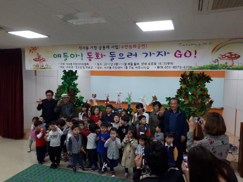 [미디어타임즈= 이옥수 기자] 고양시(시장 최성) 식사동 주민자치위원회는 지난 11일 동 주민센터 3층 대강당에서 2017년 식사동 거점공동체 사업인 ‘얘들아 동화들으러 가자GO~’ 3회차 공연을 성황리에 마쳤다.