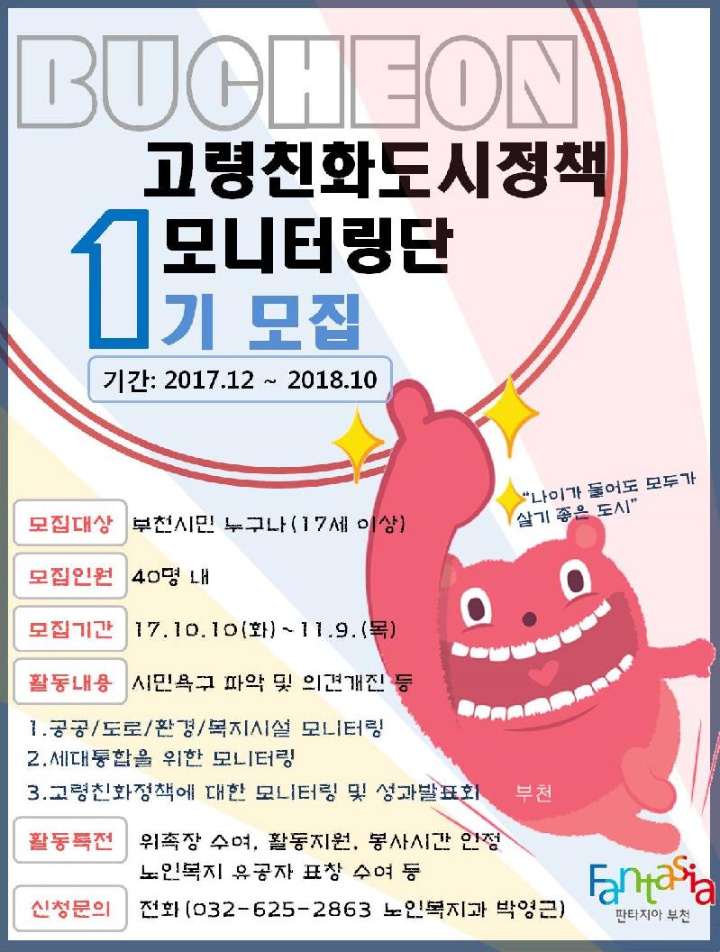 [미디어타임즈= 이옥수 기자] 부천시가 ‘고령친화도시 정책 모니터링단 1기’ 40명을 오는 11월 9일까지 모집한다.