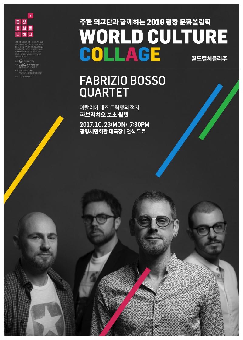 광명문화재단은 오는 23일(월) 오후 7시 30분 평창 문화올림픽 월드컬처콜라주 사업의 일환으로 진행되는 재즈공연 “파브리치오 보소 퀄텟”의 재즈공연이 광명시민회관 대공연장에서 무료로 선보인다.