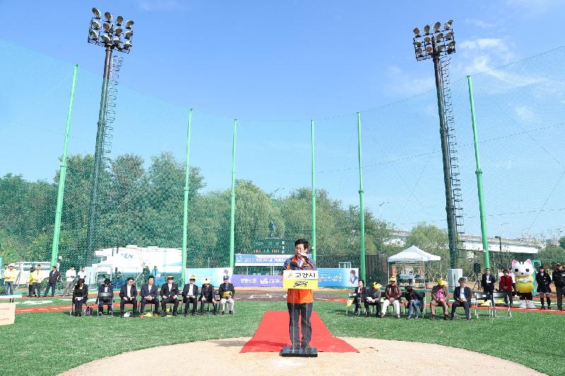 고양시(시장 최성)는 지난 14일 최성 고양시장, 이동현 경향신문 사장, 유은혜 국회의원, 허구연 KBO야구발전실행위원장 및 아마추어야구인 등 400여 명이 참석한 가운데 고양 장항야구장(일산동구 장항동 660-65)에서 화려한 개장식을 가졌다.