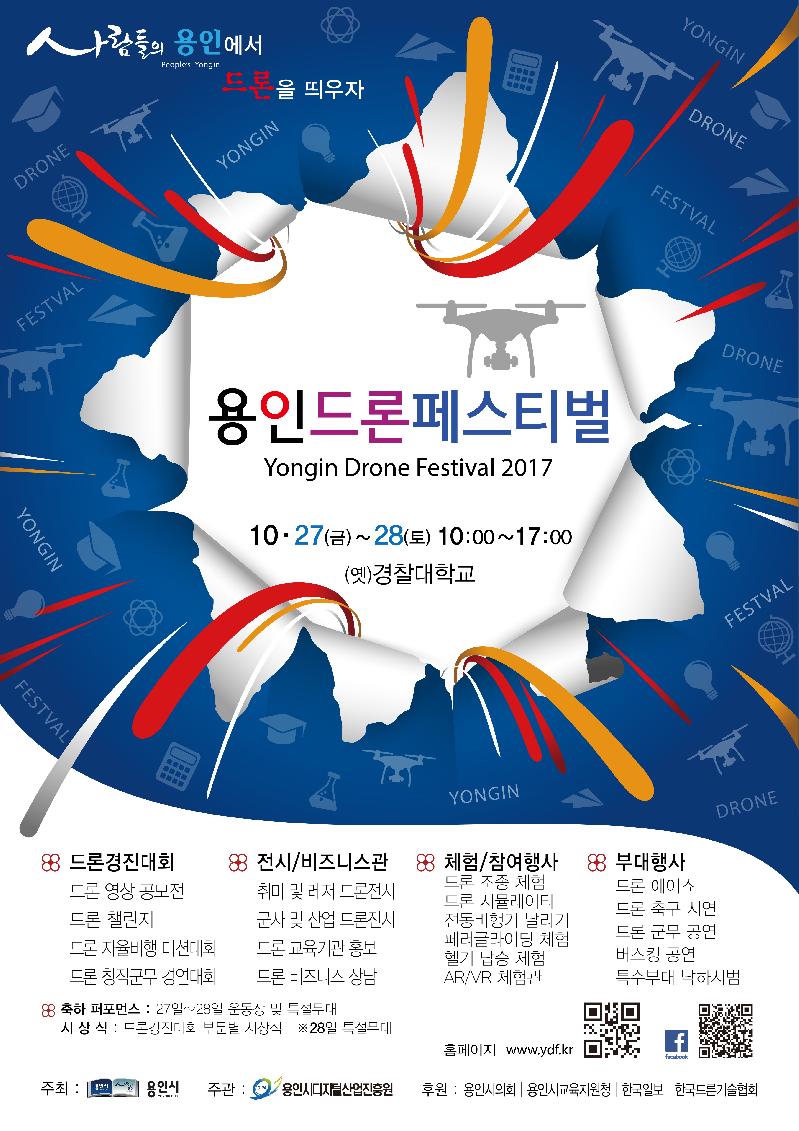 [미디어타임즈= 이옥수 기자] 용인시는 미래 성장산업인 드론 산업을 육성하고 관련 분야 인재 양성을 위해 오는 27~28일 이틀간 기흥구 언남동 옛 경찰대학교에서‘2017 용인 드론페스티벌’을 개최한다고 16일 밝혔다.