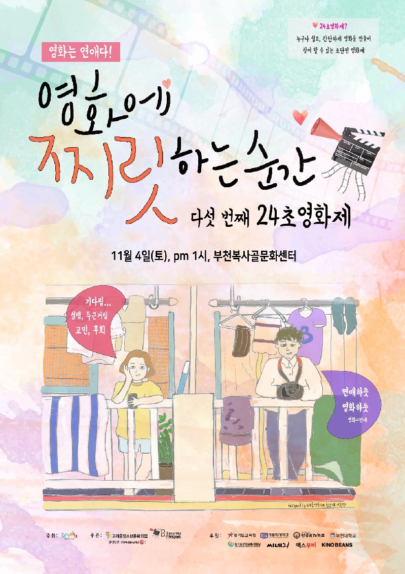 [미디어타임즈= 이옥수 기자] 부천시가 주최하고 고리울청소년문화의집(이하‘꾸마’)과 24초 영화제 청소년기획단이 주관하는 ‘제5회 24초 영화제’가 오는 11월 4일 복사골문화센터에서 개막한다.